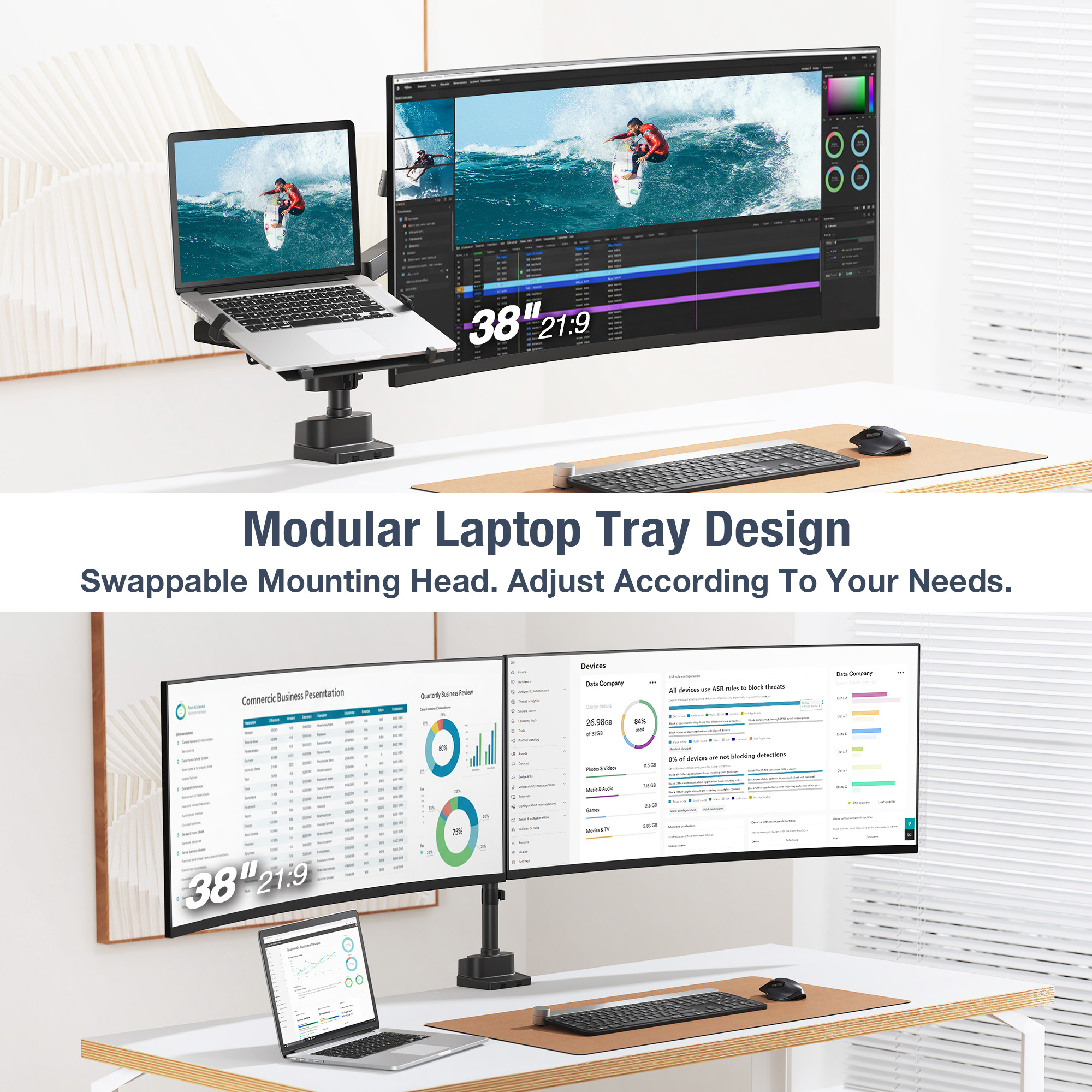 - AVLT Laptop & 38 Inch Monitor Arm Pole Top Mount-Black, Supports 26.4 lbs (12 kg), Stacked Monitor, VESA Compatible, Ultrawide Screen Fit, Adjustable Height, Tilt Swivel Rotate, Cable Management