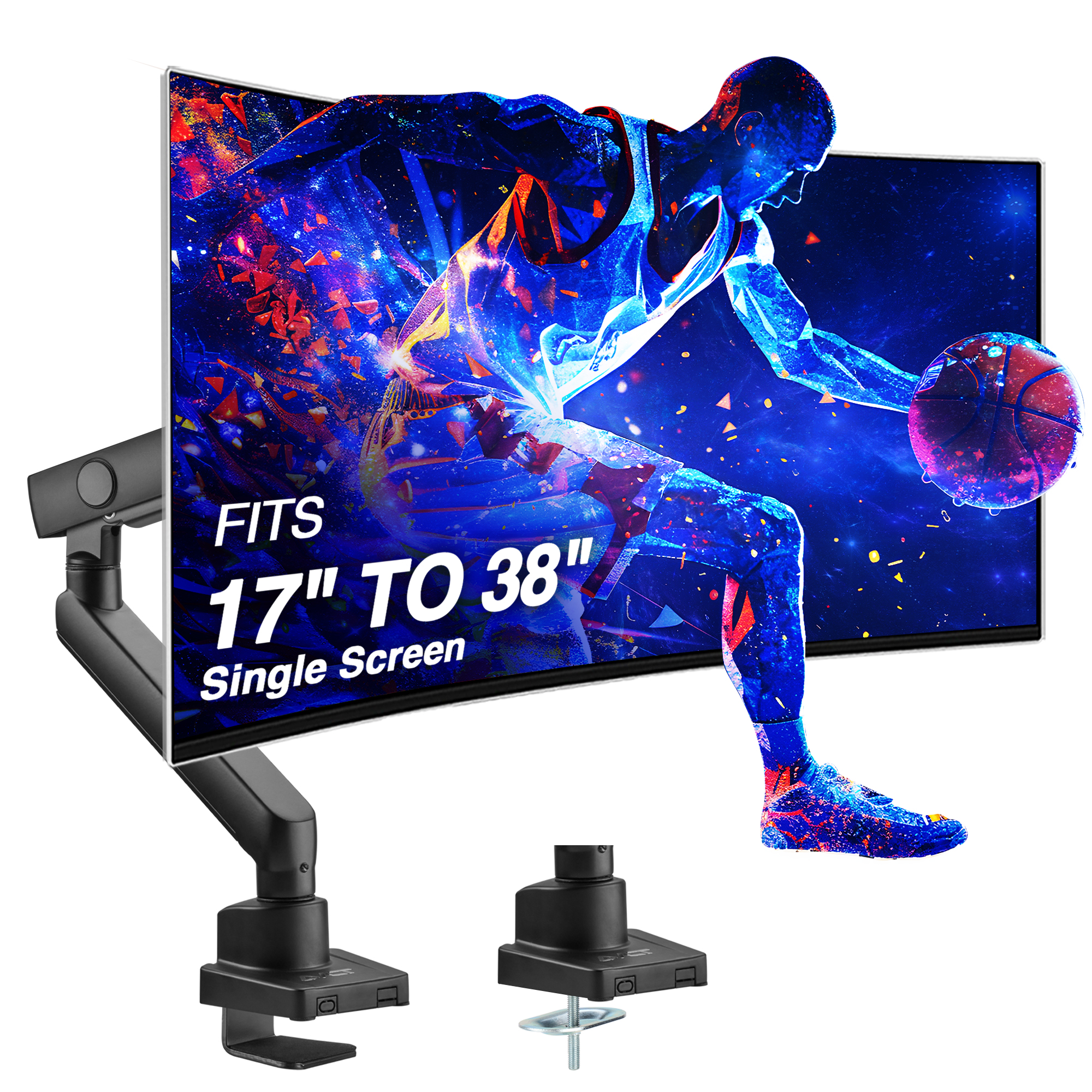 - AVLT Single 17"-38" Monitor Arm Desk Top Mount Premium Mechanical Spring Fits Up to 26.4lbs (12kg) Flat/Curved/Ultrawide Monitor Full Motion Height Swivel Tilt Rotation Adjustable, Black