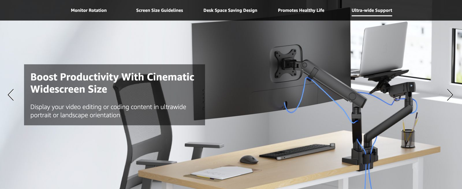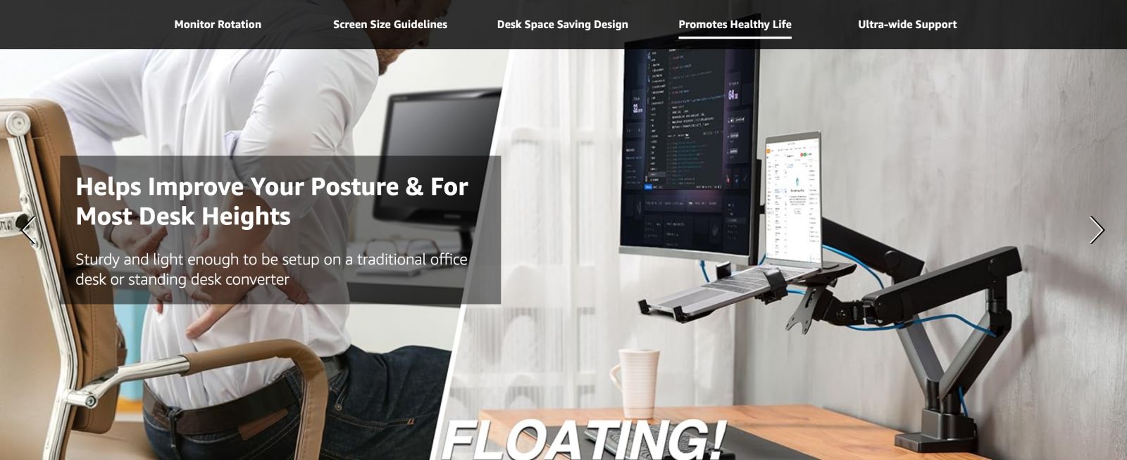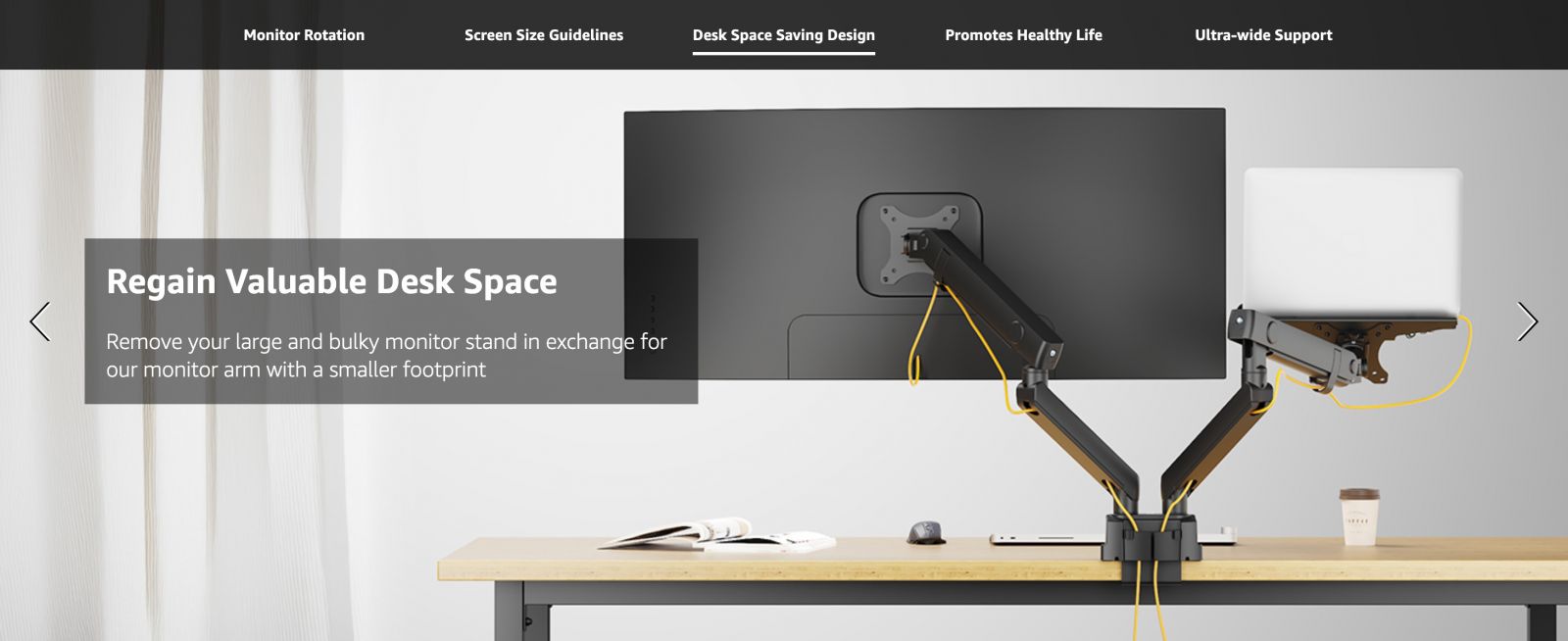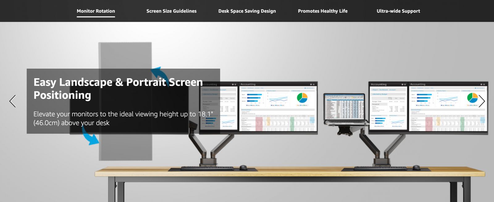 ■ Supports 17"-38" monitors up to 26.4 lbs (12 kg) and laptops with adjustable height, tilt, swivel, and rotation. Features cable management, and easy to install top mount to avoid crawling under your desk. ■ 【Fits Up to 15.6" Laptop & 38" Screen 】– Dual monitor desk mount fits most of flat/curved/ultrawide computer monitors up to 26.4 lbs (12 kg) each in weight with VESA 75x75mm or 100x100mm mounting holes. ■ 【Save Valuable Space 】– Heavy-duty metal base only take up 5.7" x 4.3" (145mm x 110mm) desk surface. The c-clamp and grommet mounting options support up to 1.9" (50mm) desk thick. ■ 【Ergonomic Viewing Height 】– Mechanical spring monitor arm assists height adjustment from 7.8" to 18.1" (198mm to 460mm). Adjusting the monitor adapts to your posture by arm extension, vertical tilt, horizontal swivel, and landscape or portrait rotation. ■ 【Stay Healthy & Focus 】– New top mounting design simplicity the assemble process. After locking a few screws, the monitor mounts instantly improve working posture, increase workspace, hide cables, and discover the most productive self.